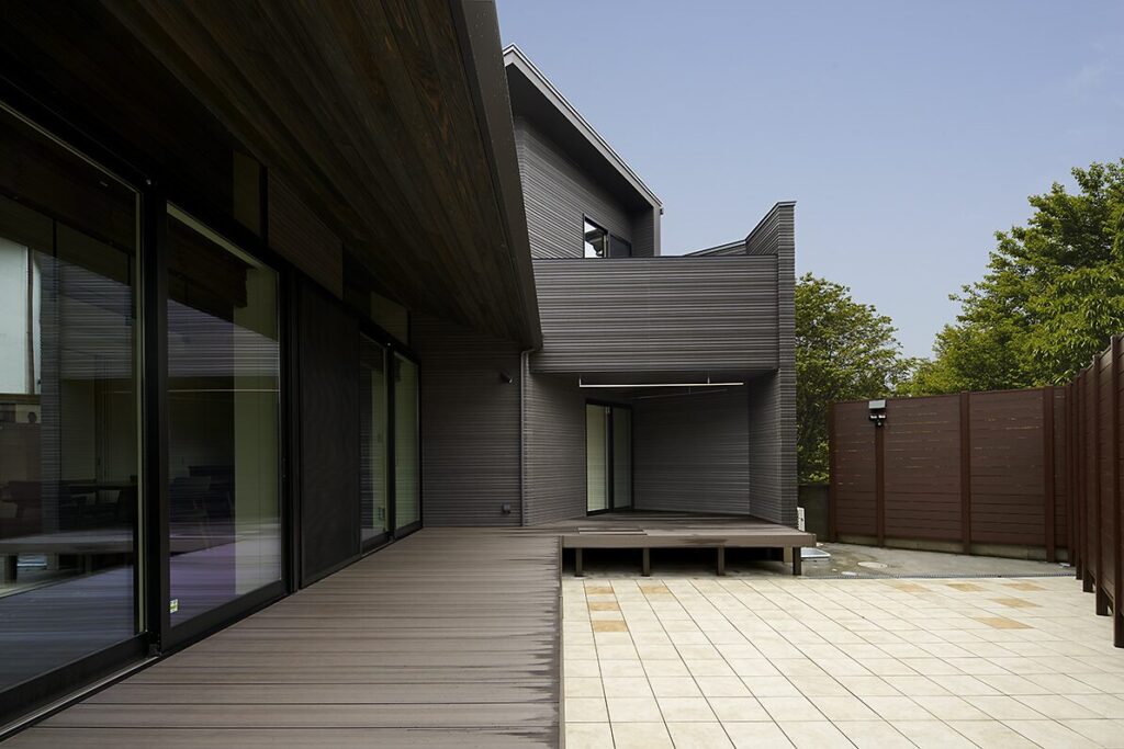 都会的なデザインが魅力のこちらの住宅は、スタイリッシュなブラック外壁と木目のアクセントが映える美しいファサードが特徴です。