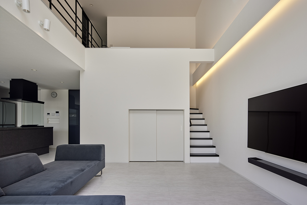 無駄を削ぎ落とし、光と影、そして余白を活かしたデザイン住宅です。モノトーンで統一された空間は、住まう人の個性を引き立てます。